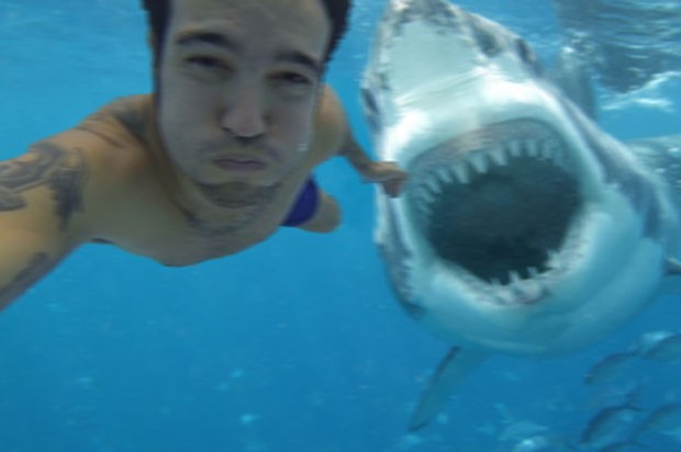 Uma falsa história de que um americano recém casado teria sido atacado por um tubarão logo após fazer um selfie com o predador ao fundo continua a ser compartilhada na internet. No entanto a imagem não passa de uma montagem.